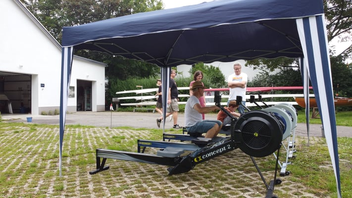 Am 19. August war es soweit. Nach ordentlicher Vorbereitung durch unser Orga-Team stand der Bierwagen bereit, die Boote waren einsatzbereit und die Waffeleisen heiß. Und wie es der Tag angekündigt hatte, so kamen auch schon tagsüber eine Menge Interessierte zu unserem Tag der offenen Tür. Mitglieder und Freunde der Ruderriege besuchten uns ebenso wie die durch das Seefest angelockten Passanten auf der Promenade. Es lockte unser Bootshaus in seiner ersten Saison nach seinem Umbau und stolz konnten wir durch die neuen Räumlichkeiten führen, bevor es dann auf´s Wasser ging. Denn Schnupperrudern war dieses Mal nicht nur auf das Ergo beschränkt. Nein, es ging direkt auf´s Wasser. Natürlich unter fachkundiger Anleitung. Zur Belohnung durfte eine Waffel nicht fehlen. Wenn man denn eine ergattern konnte. Denn ob Waffeln oder Bratwust: Überall entlang des Baldeneysees musste man durchaus etwas warten, bis man was zu futtern bekam. So gut besucht war das Seefest an diesem Tag.