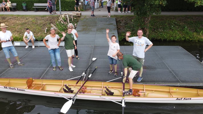 Unter all die Gäste hat sich dann auch ein Besonderer gemischt. Nicht einfach so, sondern auf Einladung von Gabi - fleißige WDR 2-Hörerin, die dem Sender den Tipp gab, dass bei uns an diesem Tag richtig Action ist. So besuchte uns der WDR2-Reporter Frank Krieger mit seinem Sohn und Hund und gab im Laufe des Tages die ein oder andere Live-Schalte direkt in die Steffi-Neu-Show. Und obwohl er damit wahrscheinlich für noch mehr Gäste gesorgt hat, ließ auch er sich nicht nehmen ein paar Meter mit uns auf den Baldeneysee zu rudern.